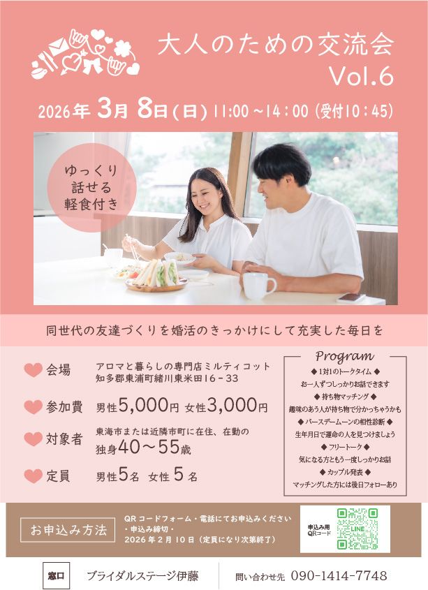 • お問い合わせ先:NPO法人ライフプランニング ブライダルステージ 伊藤 TEL 090-1414-7748